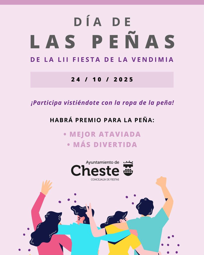 El próximo 24 de octubre, viernes, en el marco de la Fiesta de la Vendimia, tendrá lugar la primera edición de ᴇʟ ᴅɪ́ᴀ ᴅᴇ ᴘᴇɴ̃ᴀs ᴅᴇ ᴄʜᴇsᴛᴇ, con el fin de promover la tradición y el ambiente festivo de la localidad.