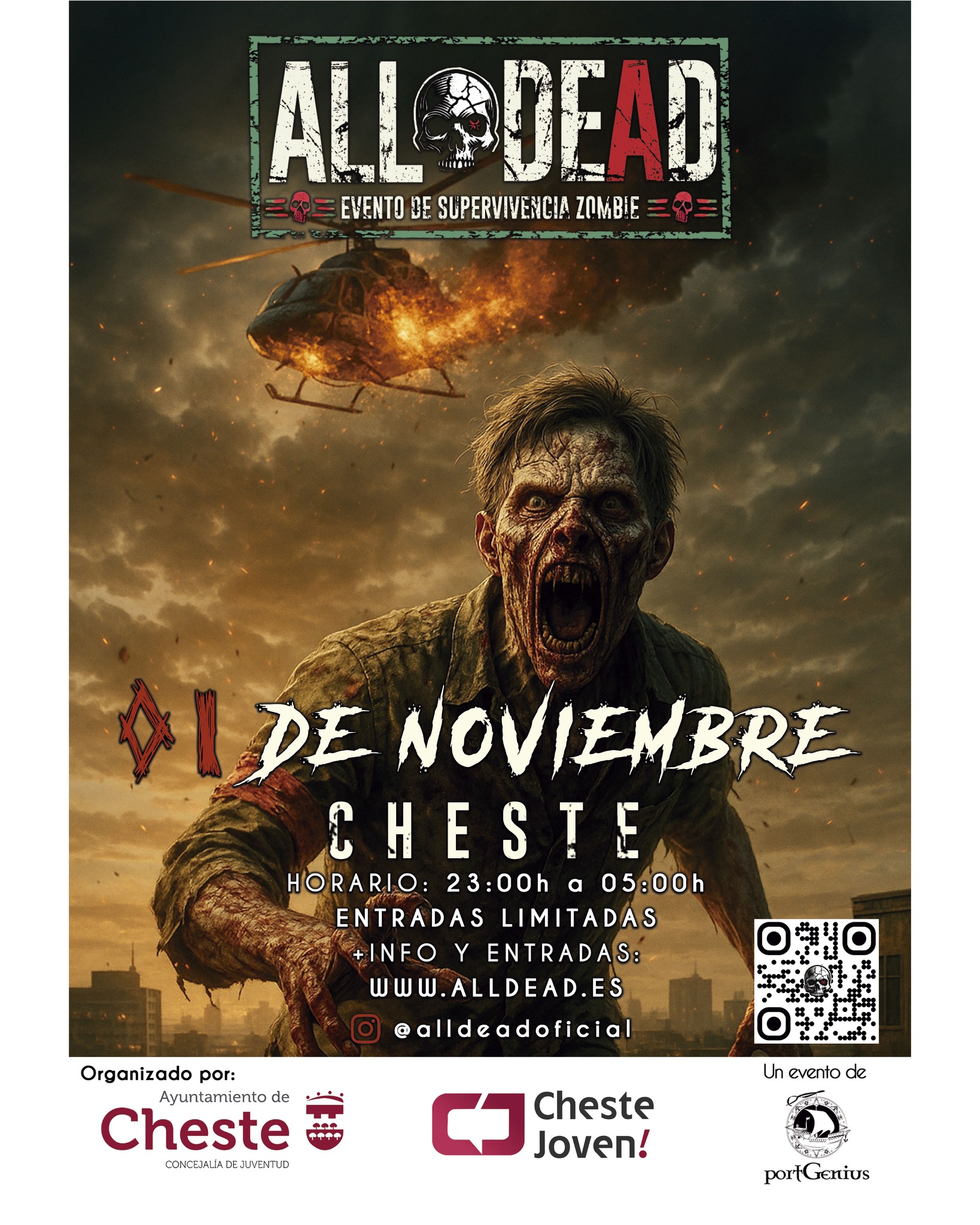 El 1 de noviembre, sábado, Cheste acogerá el evento de supervivencia zombie “All dead” en horario de 23:00 a 5:00, desde la plaza Doctor Cajal.