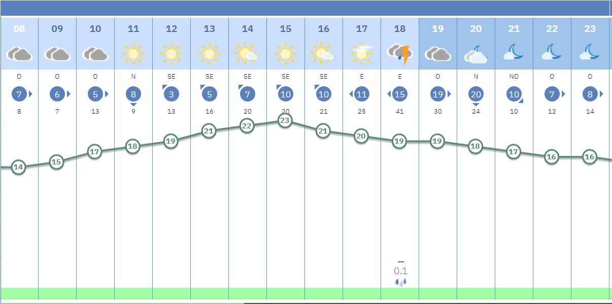 Hoy viernes tendremos un día con intervalos de sol y nubes. La temperatura se situará entre 14 y 23 grados.