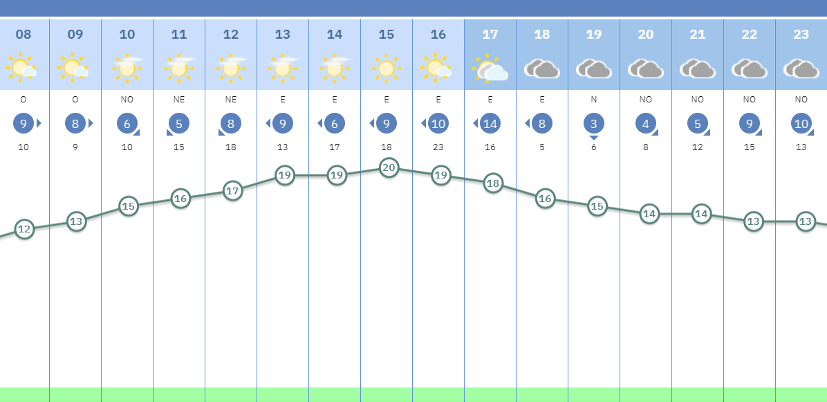 Hoy miércoles tendremos un día con predominio de sol. La temperatura se situará entre 12 y 20 grados.