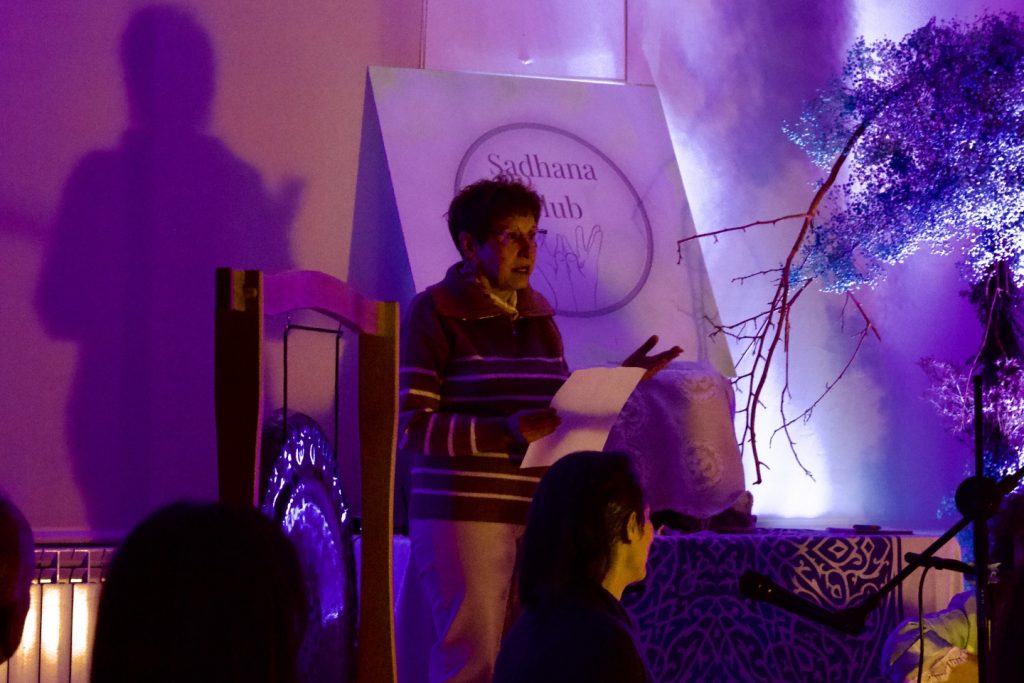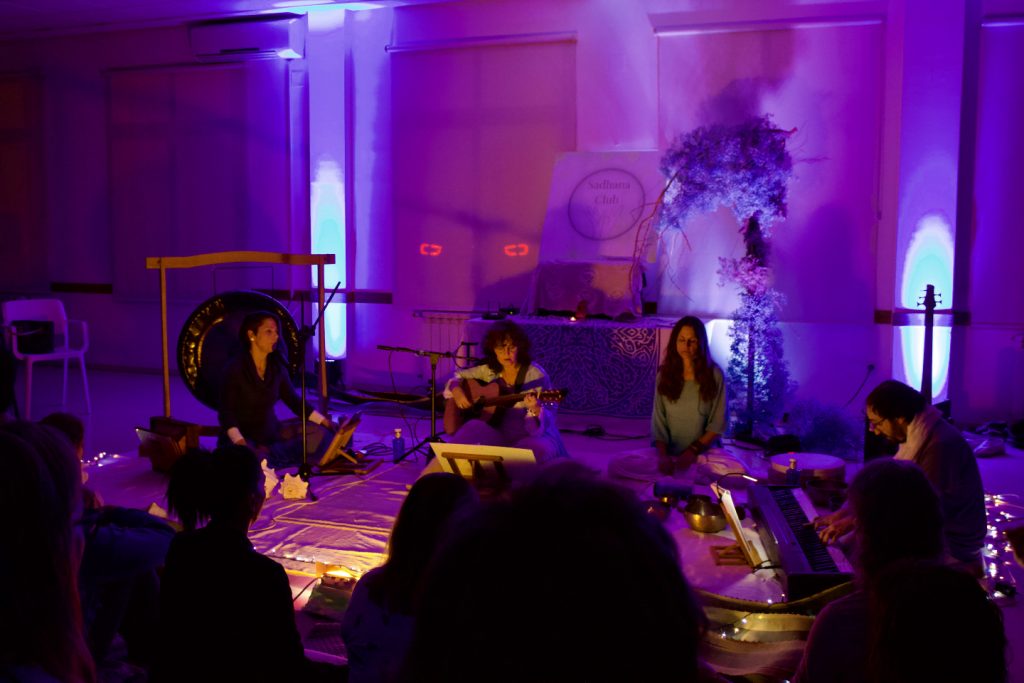 Olimpia compartió con el público que el hilo conductor del concierto que fue «la energía de la prosperidad y la abundancia», canalizada a través de mantras como Lakshmi y Asato Ma Sadgamaya.
