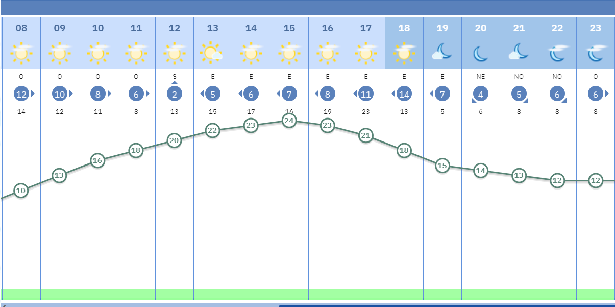 Hoy lunes tendremos un día con predominio de sol y nubes altas. La temperatura se situará entre 10 y 24 grados.