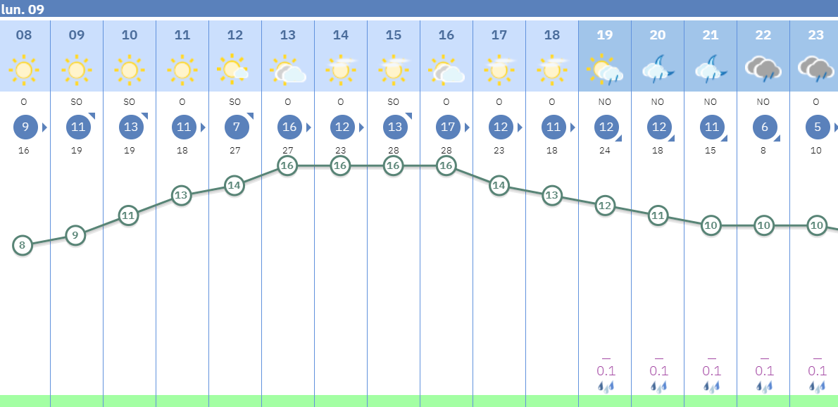 Hoy lunes tendremos un día con predominio de sol. Posibilidad de algún chubasco a última hora del día. La temperatura se situará entre 7 y 17 grados.