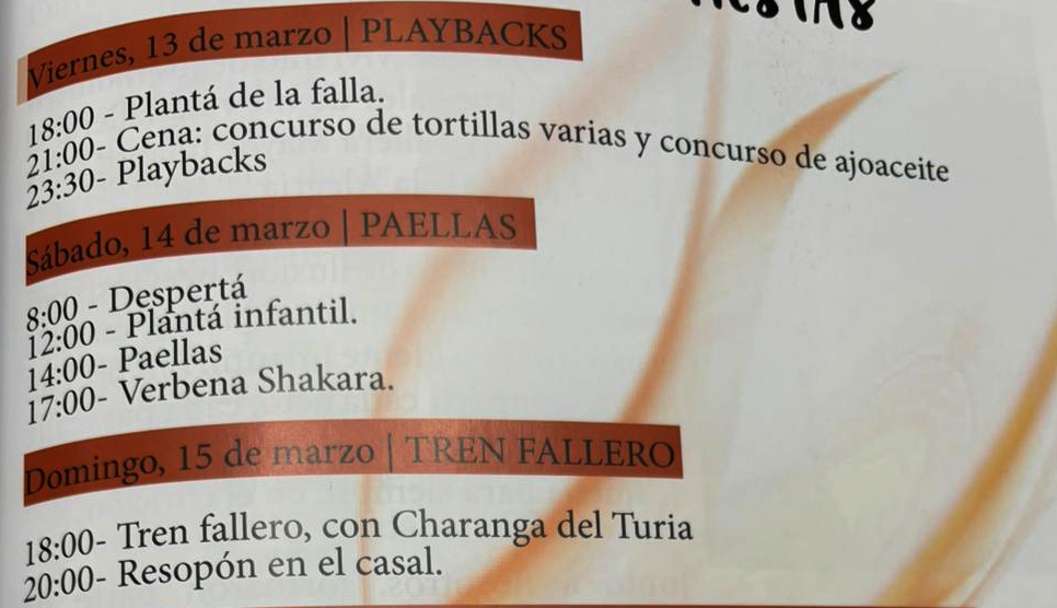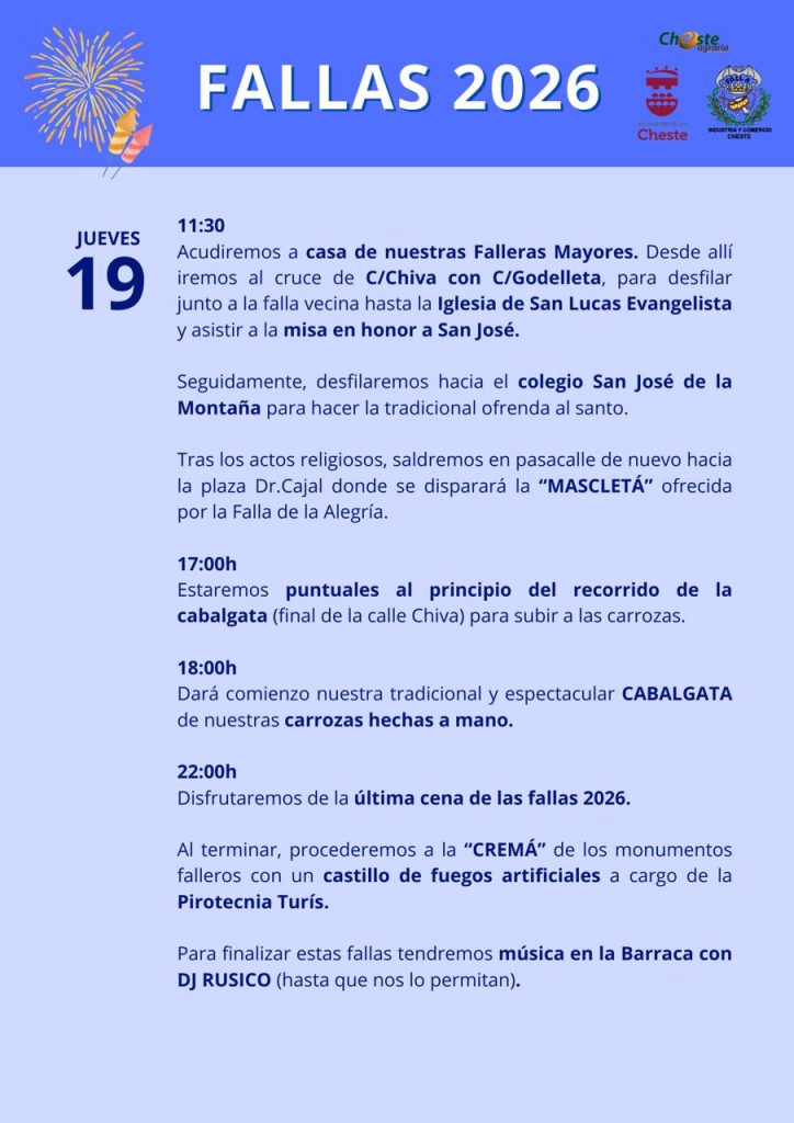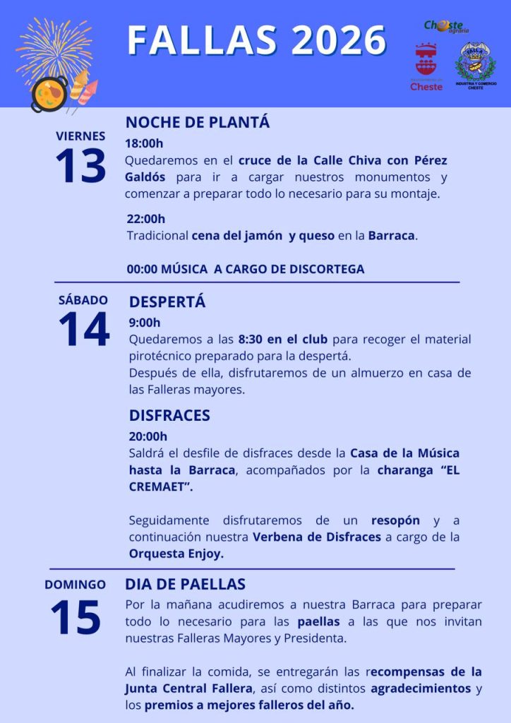 Publicado el 14 marzo, 202614 marzo, 2026 por Luis Ibáñez Gozalbo Programación Fallera {full-banner} Falla Industria y comercio Falla de la Alegría El sábado 21 se realizará la fiesta infantil con hinchables por la mañana.