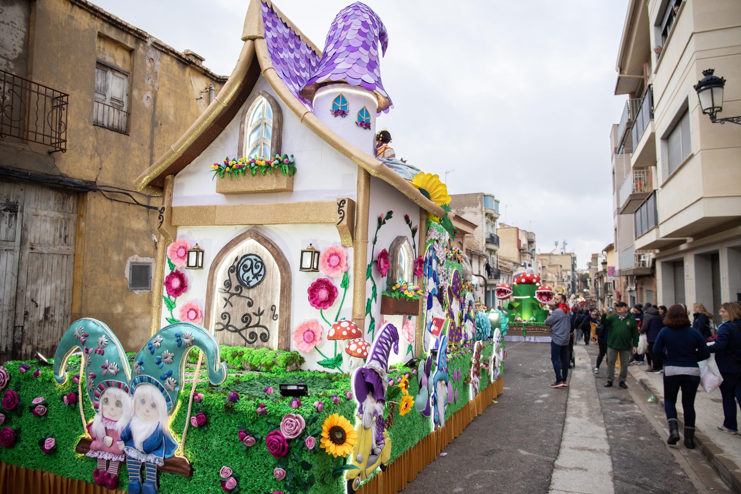 Como es tradicional, el desfile arrancará a las 18:00 horas desde la calle Chiva, acompañado por música de dolçaina i tabalet y con más de una decena de carrozas confeccionadas por la Falla Industria y Comercio y la Falla Barrio de La Alegría. El recorrido llevará a los participantes hasta la plaza Doctor Cajal, regresando después al punto de partida con las carrozas ya iluminadas, ofreciendo así un nuevo espectáculo lleno de luz, color y diversión.
